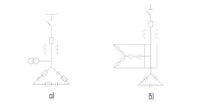схемы присоединения батарей конденсаторов высокого и низкого напряжения; а) -