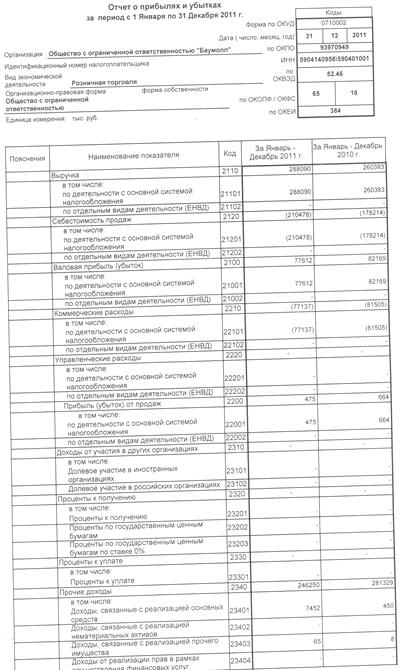 годовые отчеты предприятия, материалы бухгалтерской отчетности ООО «Баумолл»,