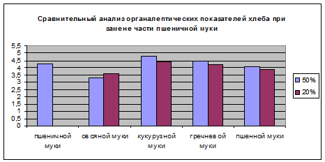 хлеба с заменой 20 % муки из различных круп выше, чем при замене 50 %, а