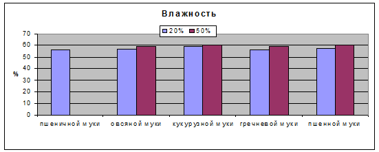 пшеничной муки 50 % мукой из различных круп влажность повышается, так как крупы