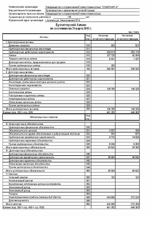Организация работы финансовой службы ТОО 'Constanta-A'