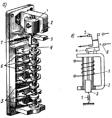 реле по этой обмотке проходит ток, образуется магнитное поле 3, которое