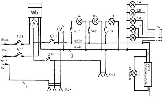 - лампочки; Wh - электросчетчик; А - амперметр; V