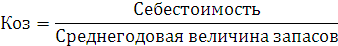 себестоимости проданных товаров к среднегодовой величине запасов.
