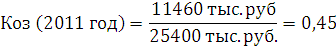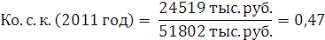 Анализ коэффициентов оборачиваемости ООО «Карабикулово» за 2011-2012 гг.