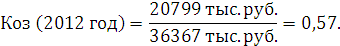 в 2012 году имеет значение 0,57 ед. Увеличение коэффициента оборачиваемости