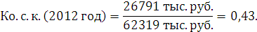 оборачиваемости собственного капитала в 2012 году имеет значение 0,43.