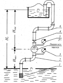 напорным 6 трубопроводами с резервуарами, оборудуется мановакуумметром 3 и
