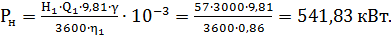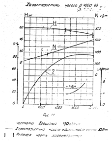 Рис. 2. Характеристика насоса типа Д4000 - 95 - при n=730 об/мин.