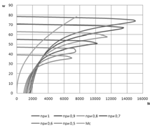 Рис. 8 . Сравнительные зависимости потребляемой из сети мощности от