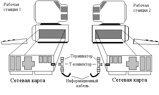 сервер и отдельные рабочие станции. Такое соединение получило широкое