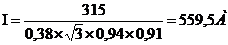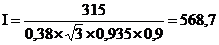 насосного агрегата мощностью 315 кВт с номинальным током 568,7 А выбирается
