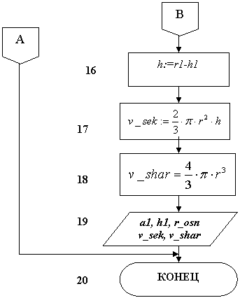 Блок 17. Вычисление объема шарового сектора.