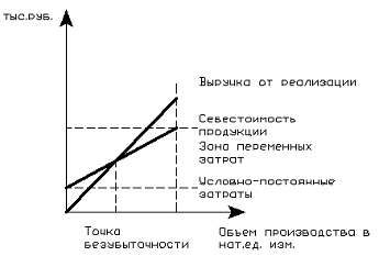 достижения безубыточности (по данным таблиц 10.1 и 10.2).