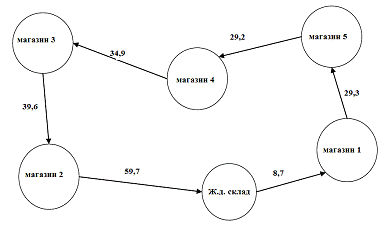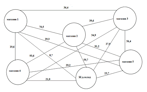 магазинов и рациональные маятниковые маршруты доставки грузов от