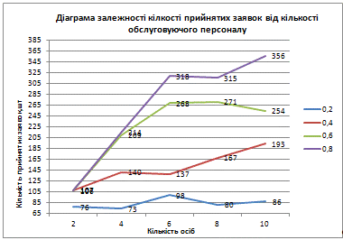 збільшити до 0,8, то маємо такі результати: стрімке зростання кількості заявок