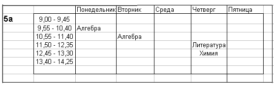 таблицы Классы