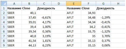 . Для начала рассчитаем дневную доходность по каждой ценной бумаги за