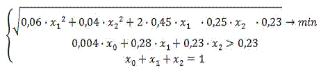 определить, при каких долях акций компаний, инвестор может получить минимальный