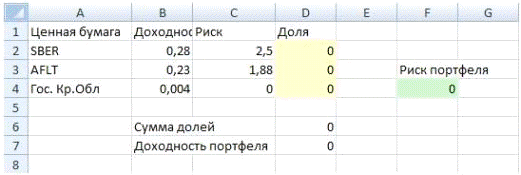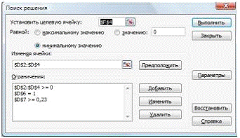 С помощью «Поиска решения» мы должны получить, доли, при которых риск
