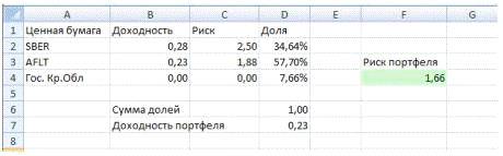 Аэрофлота и 7,66% безрисковых государственных ценных бумаг. Риск всего портфеля