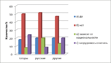 татары, 65,7% - русские, 53,3% - другие национальности). 33,3% опрошенных лиц