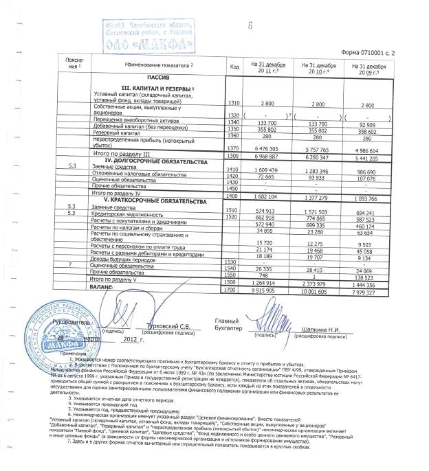 Бухгалтерский баланс ОАО «Макфа»