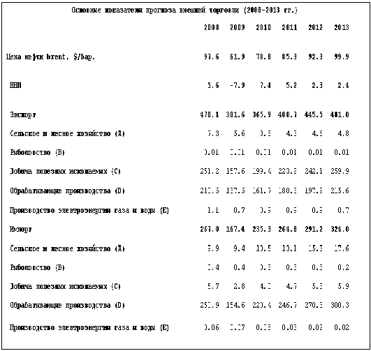 Среднесрочный прогноз внешней торговли РФ: 2010-