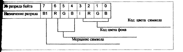 соответствующие ячейки видеобуфера. Считанный байт имеет следующую структуру :