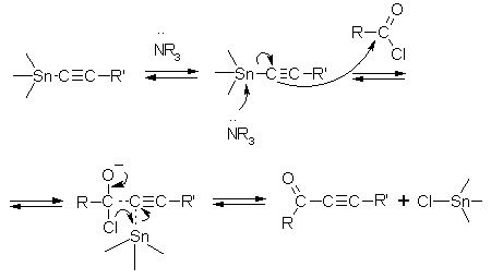 протекания реакции взаимодействия тетраалкинилидов олова с хлорангидридами