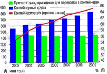 движение контейнера лишь частично связывается с флотом, остальную часть времени