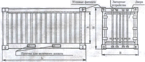 контейнера в местах установки распорок следует. подкреплять щитами.