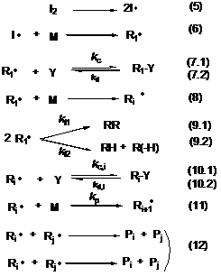 знака, таким образом, реакция обрыва цепи за счет рекомбинации двух растущих