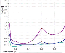 выраженных пика платины и родия при потенциалах, соответствующих определяемым
