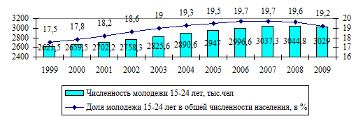 19. Численности молодежи, средняя доля в процентных отношениях с