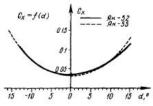 профилей самолетов Як 52 и Як-55, кривая 1 -для самолета Як-55, кривая 2-для
