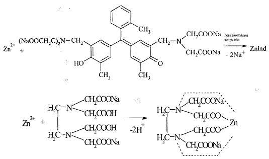 - ксиленоловий оранжевий, титрують трилоном Б до переходу синього забарвлення в