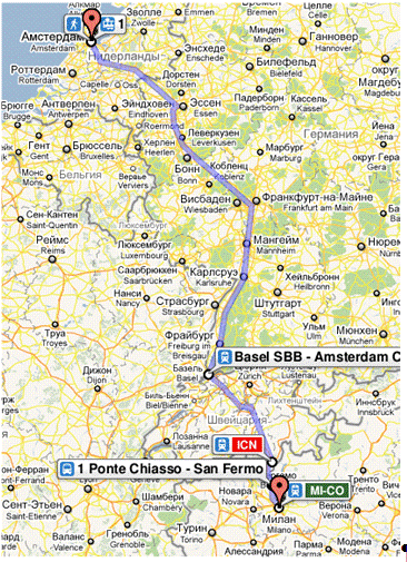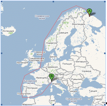 Рис. 1.Маршрут Милан (А) - Генуа (В)