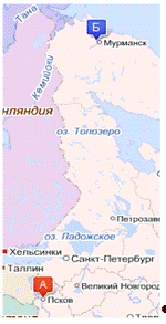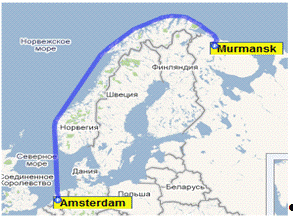 контейнеры доставляются в порт г. Мурманска. Расстояние между портами