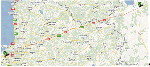 Маршрут состоит из смешанной перевозки с использованием автомобильного и