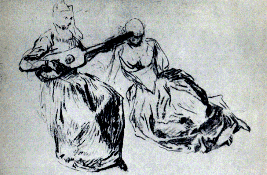 что второй этюд той же гитаристки Ватто использовал в другой своей картине -