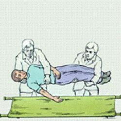 Укладывание больного на щит или любое другое