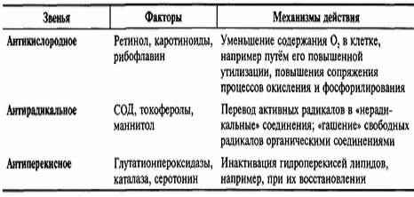 свободно-радикальных и перекисных реакций препятствуют факторы антиоксидантной