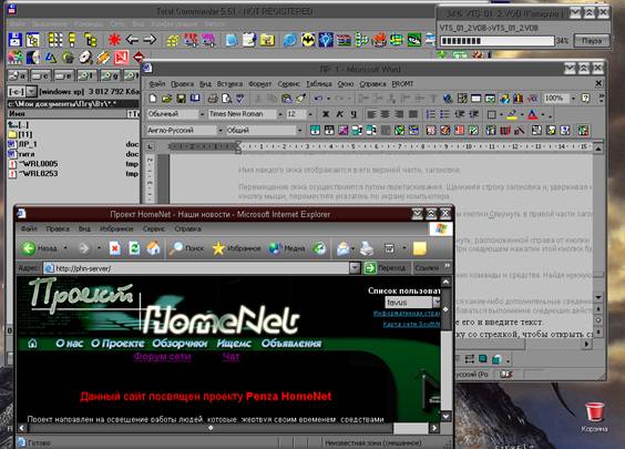 задач. Все операции с компьютером выполняются в рамках, которые называются окнами.