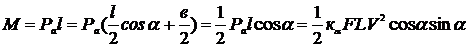 двигается с постоянной скоростью, величина момента зависит от произведения cosα sinα. Максимума