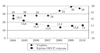 дорівнює 40 %. За таких умов важелі регулювання економіки втрачають дієвість,