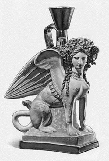 Полихромный фигурный сосуд «Сфинкс» из