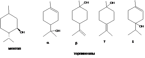 например, ментол, изопулегол и терпинеолы содержатся в составе различных
