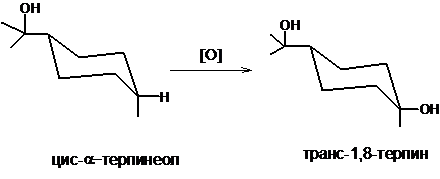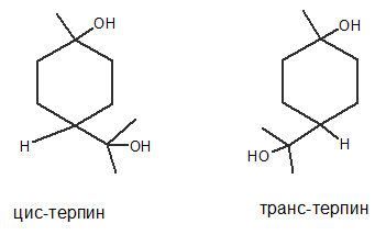 существует в виде цис-терпина (температура плавления 104-105°С) и транс-терпина