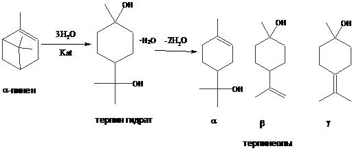 других. Катализаторами реакции гидратации пинена являются серная, соляная,